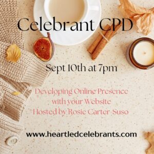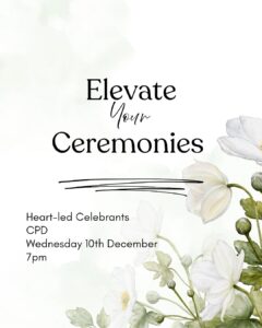 An essential part of the life of a Heart-led Celebrant is investing time in Continuing Professional Development (CPD). Each month we host a group CPD online in our Zoom Room for our certified Heart-led Celebrants and celebrants-in-training. The Zoom Room link can be found under ‘files’ in our closed Facebook group.
